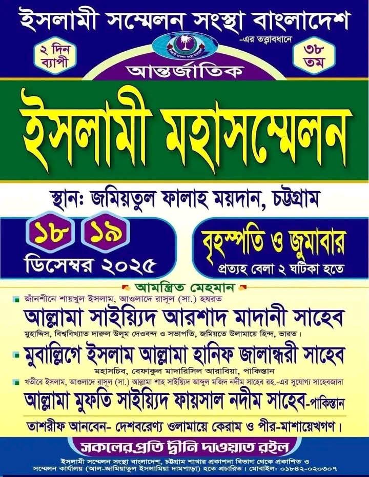 চট্টগ্রামে আন্তর্জাতিক ইসলামী মহাসম্মেলন শুরু বৃহস্পতিবার