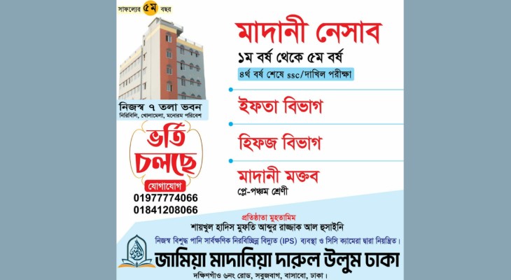 মাদানি নেসাবে ভর্তি নিচ্ছে জামিয়া মাদানিয়া দারুল উলুম ঢাকা