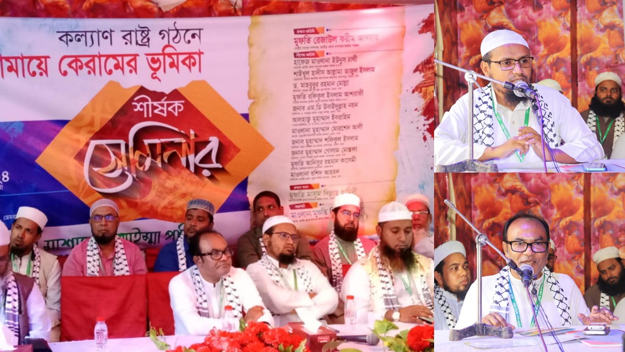 আজ বৃহস্পতিবার (২১ নভেম্বর) রাজধানীর ডেমরা কোনাপাড়ায় অবস্থিত ফুড প্লেস রেস্তোরা এন্ড পার্টি সেন্টারে (২য় তলা) অনুষ্ঠিত ‘কল্যাণ রাষ্ট্র গঠনে উলামায়ে কেরামের ভূমিকা’ শীর্ষক সেমিনারে এসব বলেন বক্তারা।