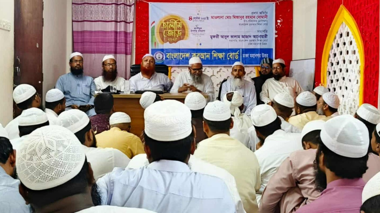বৃহস্পতিবার (৪ সেপ্টেম্বর) দুপুর ১২টায় রাজধানীর দারুস সালামস্থ একটি মিলনায়তনে বাংলাদেশ কুরআন শিক্ষা বোর্ড ঢাকা মহানগর উত্তরের উদ্যোগে আয়োজিত "তা'লীমি জোড়" (শিক্ষক প্রশিক্ষণ) অনুষ্ঠানে প্রধান অতিথির বক্তব্যে তিনি এ কথা বলেন।