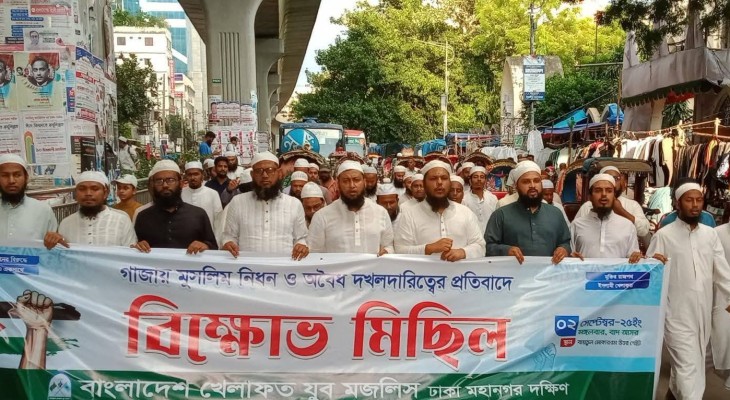 গাজায় মুসলিম নিধনের প্রতিবাদে খেলাফত যুব মজলিসের বিক্ষোভ