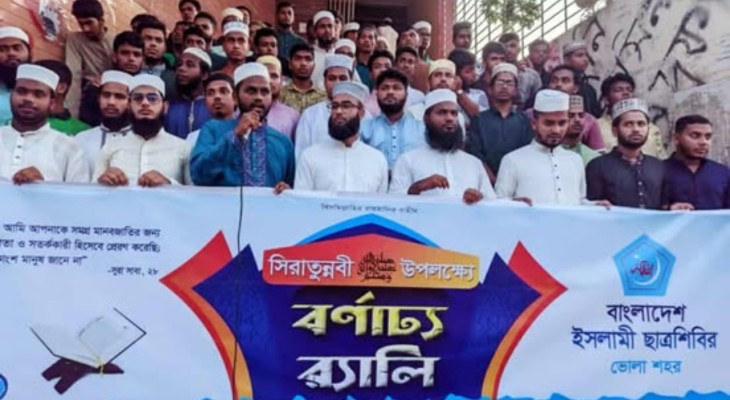 ভোলায় সিরাতুন্নবী (সা.) উপলক্ষে ছাত্রশিবিরের বর্ণাঢ্য র্যালি