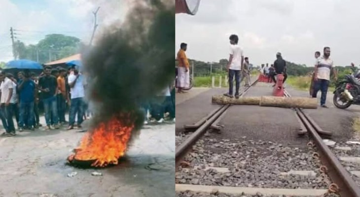 ফরিদপুরের ভাঙ্গায় রেললাইন সহ মহাসড়ক অবরোধ, চরমদুর্ভোগে ২৪ জেলার যাত্রীরা