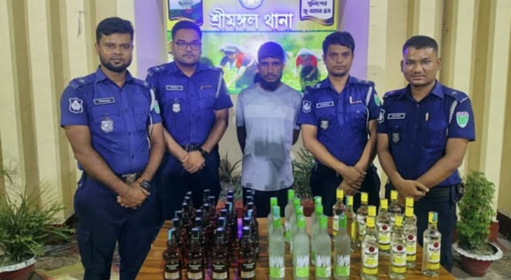 শ্রীমঙ্গলে পুলিশের অভিযানে বিদেশী মদসহ যুবক গ্রেফতার