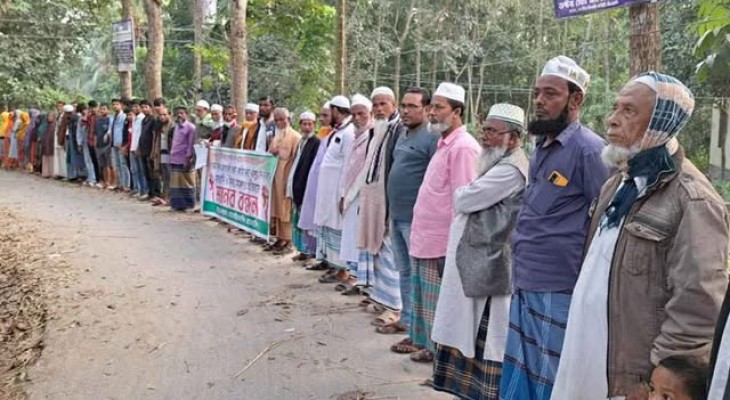 মসজিদে যাতায়াতের রাস্তা বন্ধ করার প্রতিবাদে মানববন্ধন