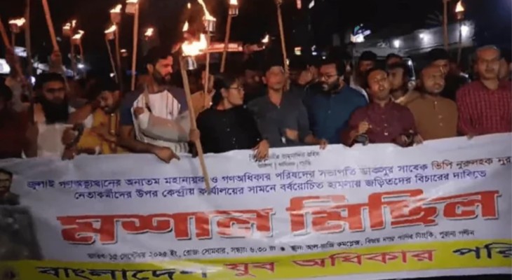 নুরের ওপর হামলাকারীদের গ্রেফতারের দাবিতে রাজধানীতে মশাল মিছিল