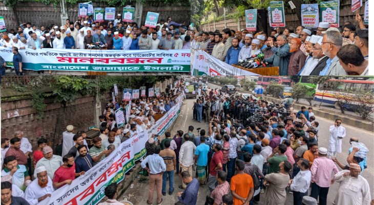 রাজধানীতে জামায়াতের ২০ কিলোমিটারজুড়ে মানববন্ধন