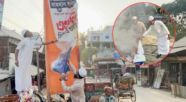 নির্বাচনী ব্যানার, ফেস্টুন নিজেই পুড়িয়েছেন এমপি প্রার্থী রায়হান জামিল