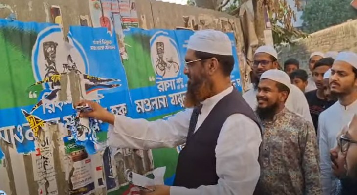 ইসির আচরণবিধি মেনে নিজেই পোস্টার ছিঁড়লেন ইবনে শাইখুল হাদিস