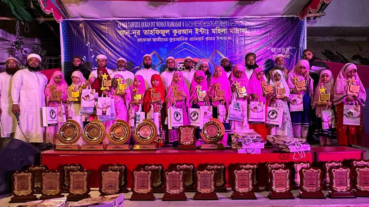 ঢাকা দক্ষিণ বনশ্রীর অনুর তাহফিজুল কুরআন মাদ্রাসা উপহার দিয়েছে ২০ জন হাফেজা। দেশের খ্যাতিমান আলেমেদ্বীন ও সঙ্গীত শিল্পীদের উপস্থিতিতে তাদের হাতে তুলে দেয়া হয় সম্মাননা স্মারক, ক্রেস্ট সনদ, বোরকাসহ অন্যান্য উপহার। গতকাল শুক্রবার (১১ এপ্রিল ২৫) বিকালে তাহফিজুল কুরআন মাদ্রাসার কৃতি শিক্ষার্থীদের হাতে এ সম্মাননা স্মারক তুলে দেয়া হয়।