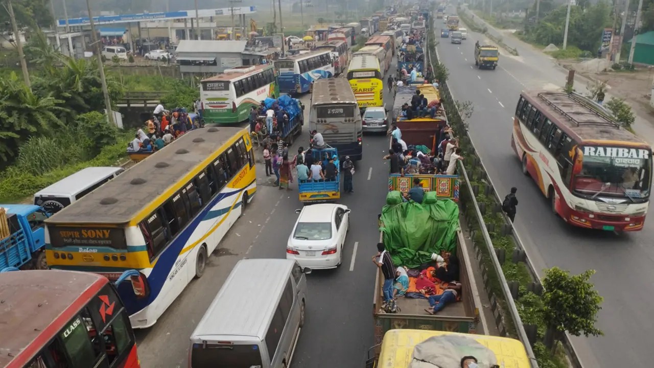 ঘরমুখো মানুষের দুর্ভোগের কথা জানিয়ে চালকরা বলেন, ২ ঘণ্টার পথ পাড়ি দিতে সময় লাগছে ৬ থেকে ৮ ঘণ্টা। দীর্ঘক্ষণ জটের মধ্যে আটকে থাকায় শিশু ও বৃদ্ধদের অবস্থা আরও করুণ।
