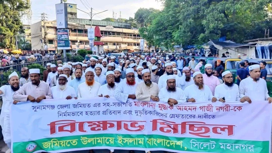 জমিয়তের কেন্দ্রীয় নেতা ও সুনামগঞ্জ জেলা সহ-সভাপতি বিশিষ্ট আলেমে দ্বীন ও বিশিষ্ট সমাজসেবী, কারা নির্যাতিত মজলুম আলেম মাওলানা মুস্তাক আহমদ গাজীনগরীরকে গত মঙ্গলবার দিবাগত রাতে দুষ্কৃতিকারীরা নির্মমভাবে হত্যা করে লাশ নদীতে ফেলে দেয়। এই দুষ্কৃতিকারীদের অবিলম্বে গ্রেফতার করে দৃষ্টান্তমূলক শাস্তির দাবি জানিয়েছেন জমিয়তে উলামায়ে ইসলাম বাংলাদেশ সিলেট মহানগর নেতারা।