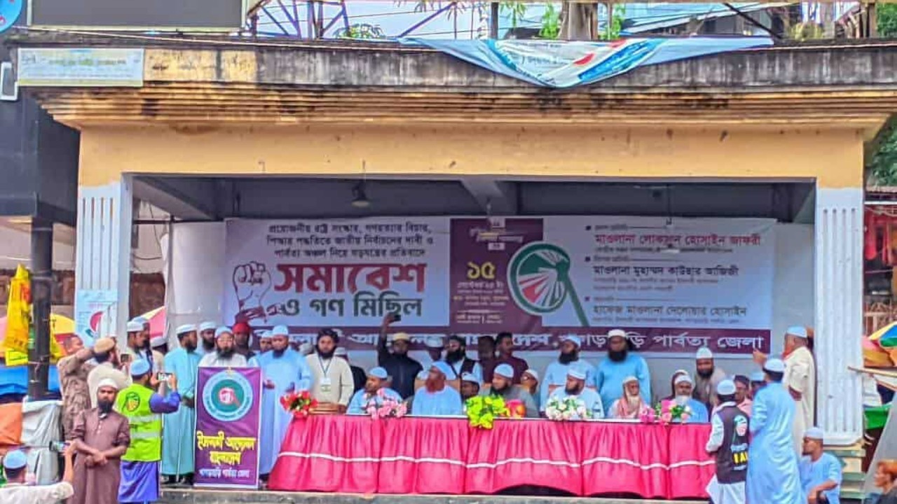 পিআর পদ্ধতিতে জাতীয় সংসদ নির্বাচন, প্রয়োজনীয় রাষ্ট্র সংস্কার ও গণহত্যার বিচার দাবিতে খাগড়াছড়িতে গণ মিছিল ও সমাবেশ করেছে ইসলামী আন্দোলন বাংলাদেশ ।