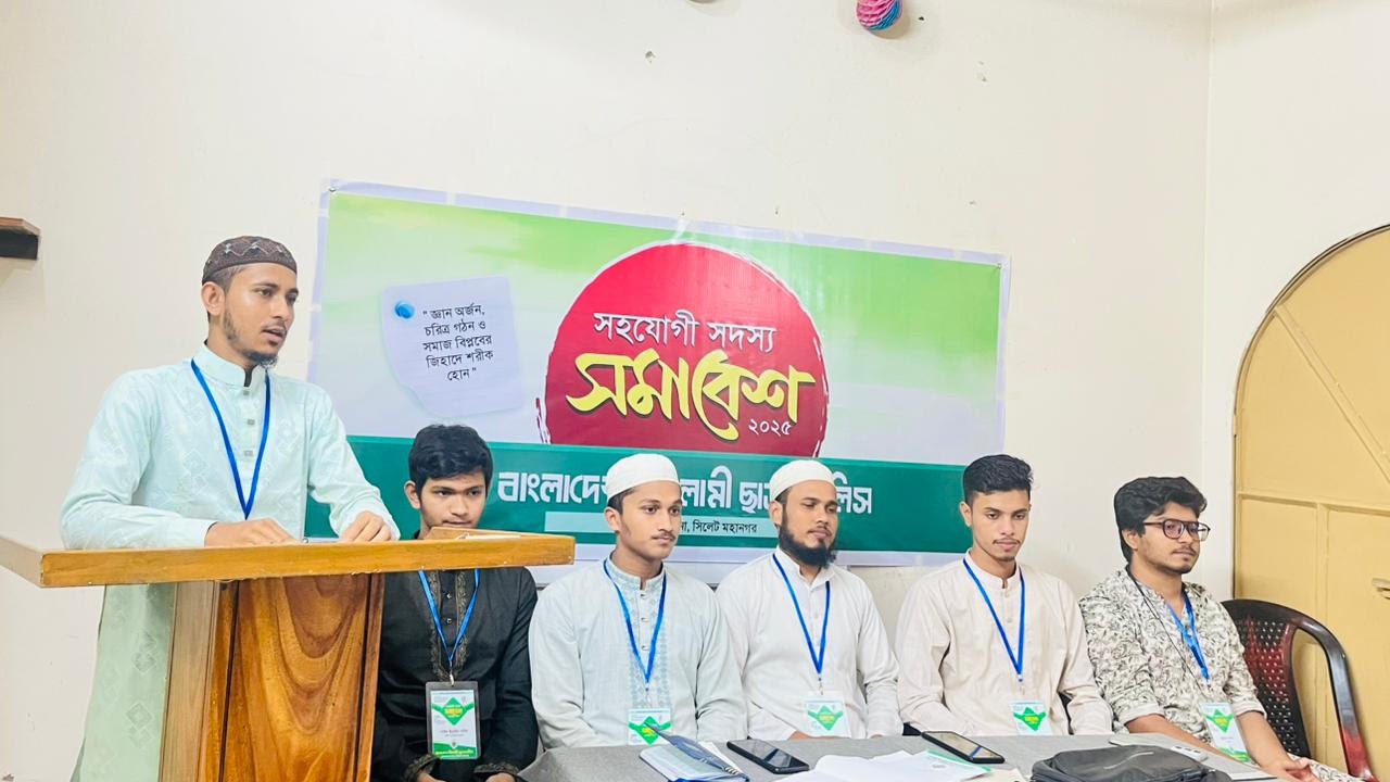 ৩ অক্টোবর '২৫, ( শুক্রবার)দুপুর ২.৩০ টায় বাংলাদেশ ইসলামী ছাত্র মজলিস সিলেট মহানগরীর আওতাধীন জালালাবাদ থানার উদ্যোগে বার্ষিক সহযোগী সদস্য সমাবেশ নগরীর পাঠানটুলাস্থ আর-রশিদ মিলনায়তনে অনুষ্ঠিত হয়েছে।