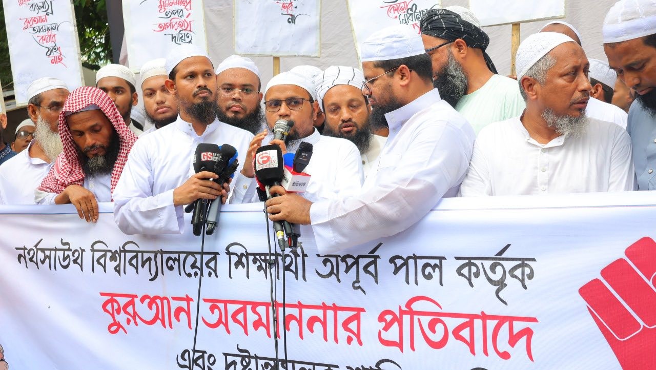 তারা আরও বলেন, বাংলাদেশ একটি মুসলিমপ্রধান দেশ। এখানে কোরআন অবমাননা বা ইসলামবিরোধী কর্মকাণ্ডের স্থান নেই। এমন ঘটনার পুনরাবৃত্তি রোধে সরকারকে কঠোর আইন প্রয়োগের মাধ্যমে অপরাধীর দৃষ্টান্ত স্থাপন করতে হবে।