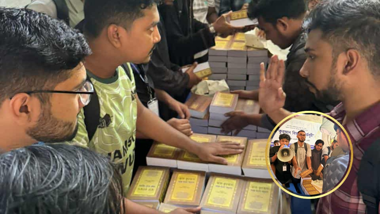 বিতরণের কার্যক্রম দুপুর ১২টায় শুরু হওয়ার কথা থাকলেও বৃষ্টির কারণে খানকিটা বিলম্ব হয়। পরবর্তী সময়ে কার্যক্রম শুরু হয় দুপুর পৌনে একটায়। তবে অবাক করার মতো বিষয় হলো—পুরো ক্যাম্পাসজুড়ে ৩৫০টি কোরআন শরিফ বিতরণ সম্পন্ন হয় কেবল তিন মিনিটে! যার মধ্যে ৩০০টি বিতরণ করা হয় বিশ্ববিদ্যালয়ে অধ্যয়নরত শিক্ষার্থীদের মধ্যে এবং বাকি ৫০টি বিতরণ করা হয় বিশ্ববিদ্যালয়ের শিক্ষকবৃন্দের মাঝে।