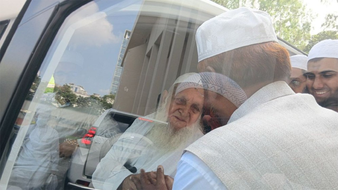 শনিবার (১৮ অক্টোবর) দুপুরে রাজধানীর আব্দুল গনি রোডের ওসমানী স্মৃতি মিলনায়তনে শাপলা চত্বরে সংঘটিত হত্যাযজ্ঞে শহীদদের পরিবারের সদস্যদের মাঝে চেক বিতরণ অনুষ্ঠান শেষে হেফাজত আমিরের সঙ্গে দেখা করেন তিনি।