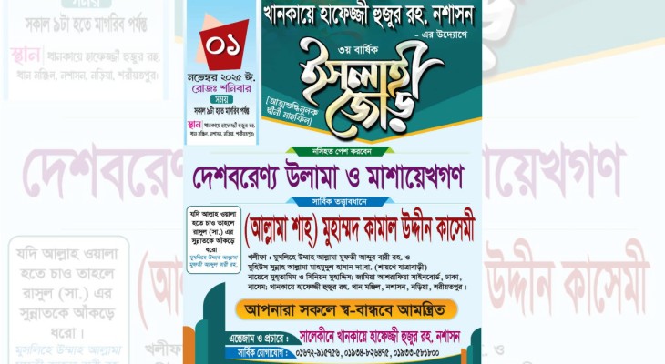 আর কোনো দায়িত্ব নেব না, এটাই শেষ: ধর্ম উপদেষ্টা মাওলানা ওমর ফারুক সন্দ্বীপী হাসপাতালে, দোয়া কামনা মানব সম্পদ উন্নয়নে শিক্ষা ও স্বাস্থ্যের বিকল্প নেই: পররাষ্ট্র উপদেষ্টা রাজনৈতিক নেতা ও অনেক আলেম-ওলামার মৃত্যুদণ্ড মিথ্যা মামলায় দেওয়া হয়েছে: মির্জা ফখরুল যুক্তরাজ্যে মসজিদ ও মুসলিমদের নিরাপত্তায় ১৪ কোটি টাকার বিশেষ তহবিল হেফাজতে ইসলাম ইতালি শাখার নতুন কমিটি ঘোষণা শরীয়তপুরে খানকায়ে হাফেজ্জী হুজুর রহ.-এর ইসলাহি জোড় ১ নভেম্বর গাজায় নতুন বেসামরিক প্রধান হিসেবে স্টিভ ফ্যাগিনকে নিয়োগ দিয়েছে যুক্তরাষ্ট্র ১৪৩ দিনে কোরআনের হাফেজ ৯ বছরের আরফান এক সপ্তাহ ধরে নিখোঁজ মাদরাসা শিক্ষক আব্দুল কাদের