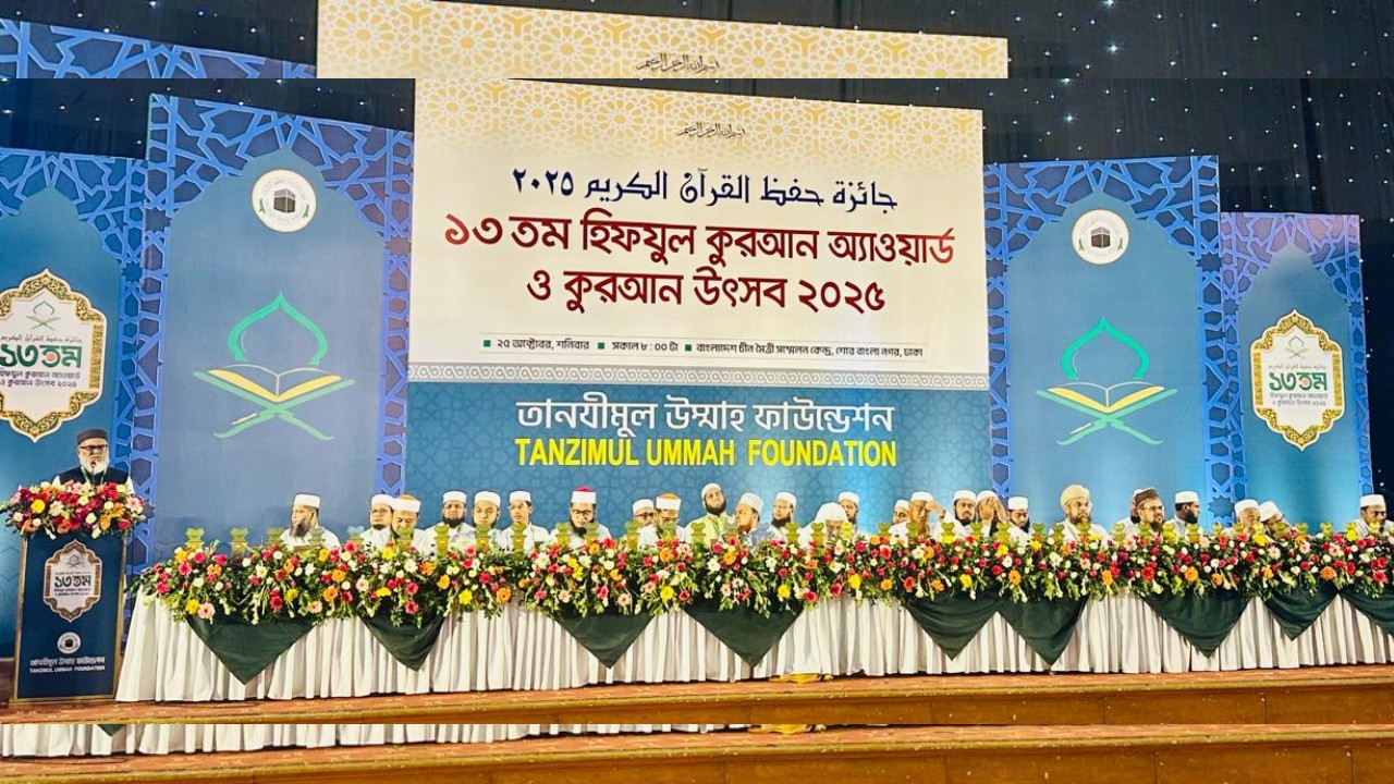 তানযীমুল উম্মাহ ফাউন্ডেশনের আয়োজনে ১৩তম হিফজুল কোরআন অ্যাওয়ার্ড ও কোরআন উৎসব অনুষ্ঠিত হয়েছে। এতে দেশের ১৭১৫ জন কোরআনের হাফেজ ও তাদের বাবা-মাকে সম্মাননা প্রদান করা হয়।