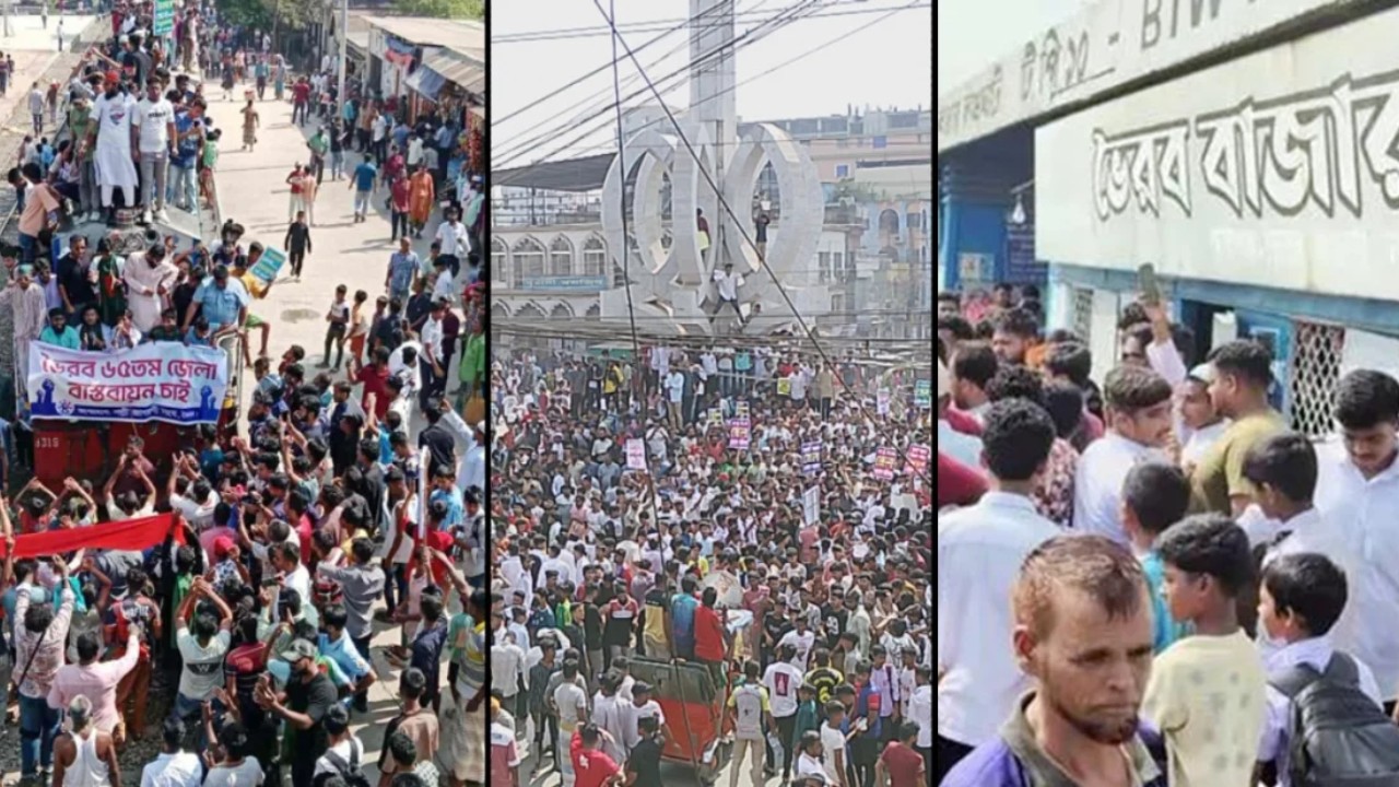 ভৈরবকে জেলা ঘোষণার দাবিতে রেলপথ অবরোধ, যাত্রীবাহী ট্রেনে পাথর নিক্ষেপভৈরবকে জেলা ঘোষণার দাবিতে রেলপথ অবরোধ, যাত্রীবাহী ট্রেনে পাথর নিক্ষেপ