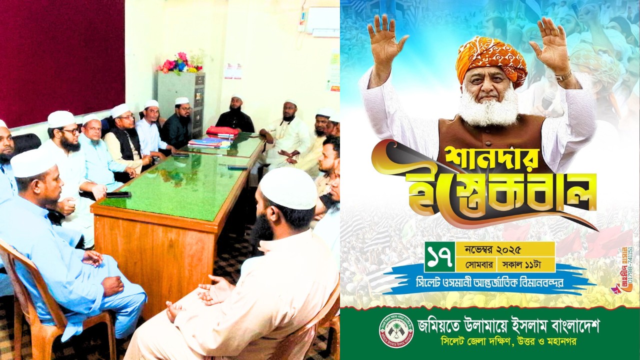 নেতৃবৃন্দ বলেন, সিলেটবাসীর পক্ষ থেকে একজন আন্তর্জাতিক খ্যাতিসম্পন্ন আলেমকে অভ্যর্থনা জানাতে সবাই ব্যাকুল হয়ে আছেন। তারা আশা প্রকাশ করেন—মাওলানা ফজলুর রহমানের এ সফর দাওয়াতি অঙ্গনে নতুন অগ্রযাত্রা সৃষ্টি করবে।বিজ্ঞপ্তি।
