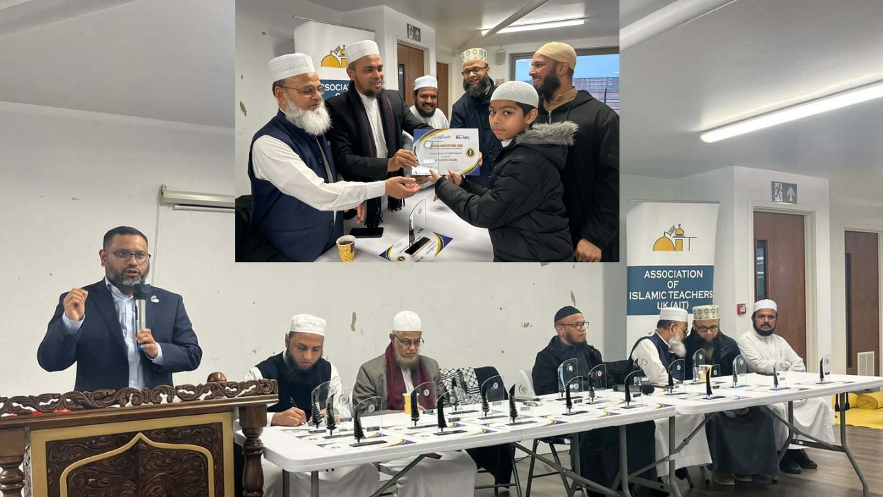 প্রতি বছরের ন্যায় এবারও অত্যন্ত আড়ম্বরপূর্ণ ও সুশৃঙ্খল পরিবেশে যুক্তরাজ্যের ইসলামী শিক্ষকদের অন্যতম সংগঠন এসোসিয়েশন অব ইসলামিক টিচার্স ইউকে (এআইটি)-এর উদ্যোগে অনুষ্ঠিত হয়েছে কোরআন প্রতিযোগিতা ২০২৫-এর বিজয়ী শিক্ষার্থীদের সার্টিফিকেট ও পুরস্কার বিতরণী অনুষ্ঠান।