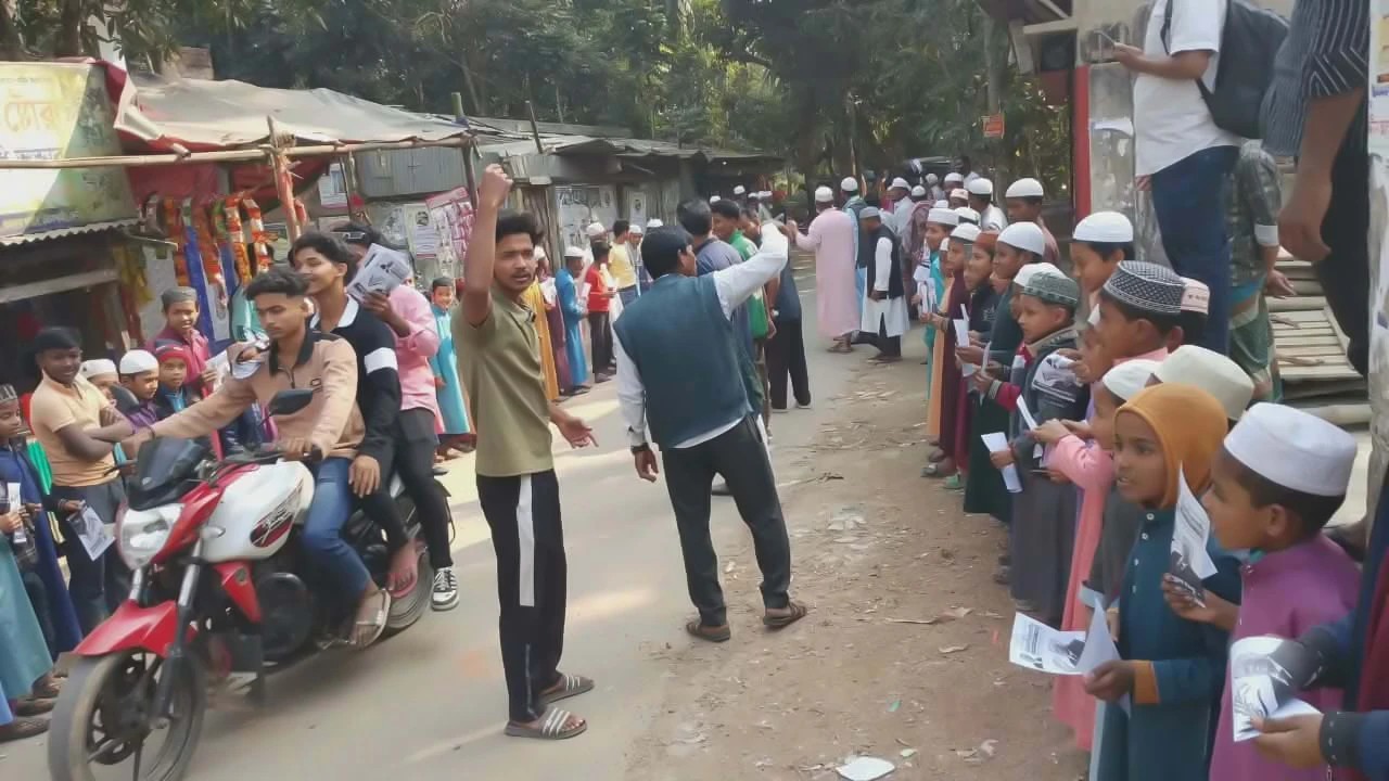 সংশ্লিষ্ট সূত্র জানায়, শনিবার সকালে সোনাগাজীর চরদরবেশ এলাকায় ফেনী-৩ আসনে বিএনপির ভাইস চেয়ারম্যান ও দলীয় প্রার্থী আবদুল আউয়াল মিন্টুর নির্বাচনী প্রচারণা চলাকালে আশরাফুল উলুম আকবরিয়া মাদ্রাসার শিক্ষার্থীরা সড়কে দাঁড়িয়ে ধানের শীষের পক্ষে স্লোগান দেয়। এ সময় মাদ্রাসার শিক্ষক মোশাররফ হোসেন শিক্ষার্থীদের প্রচারণায় অংশ নিতে উৎসাহ দেন। পাশাপাশি প্রার্থী নিজেও শিক্ষার্থীদের সঙ্গে হাত মিলিয়ে উৎসাহ প্রকাশ করেন।