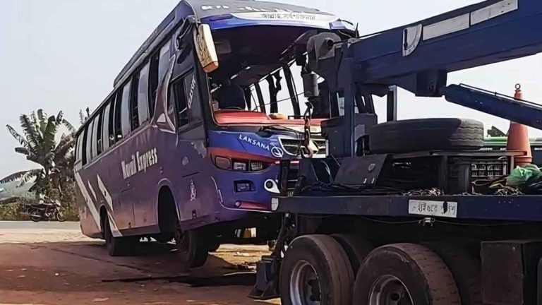 আজ বুধবার দুপুর ১টার দিকে ঢাকা-খুলনা মহাসড়কে ভাঙ্গা উপজেলার সুয়াদি এলাকায় সিসিপিএল পেট্রোল পাম্পের সামনে এই দুর্ঘটনা ঘটে। নিহতের মধ্যে একজন বাসের সুপারভাইজার শরিফুল ইসলাম। অপর নিহতের পরিচয় এখনো জানা যায়নি।