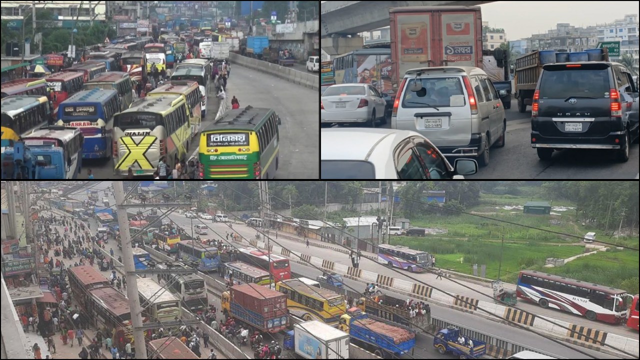 এছাড়া ঢাকা-টাঙ্গাইল মহাসড়কের চন্দ্রা ত্রিমোড় ও আশেপাশের এলাকায় বেড়েছে যানবাহনের সংখ্যা। তবে এই অংশ দিয়ে অনেকটা স্বাভাবিক গতিতে যানবাহন চলাচল করছে। ভোগান্তি ছাড়াই গন্তব্যে পৌঁছাতে পেরে স্বস্তি প্রকাশ করেছেন যাত্রীরা। তবে পোশাক কারখানা ছুটি হলে মহাসড়কে গাড়ি ও মানুষের চাপ বাড়বে। এতে যানজটের শঙ্কা করছেন যাত্রী, চালক ও স্থানীয়রা।