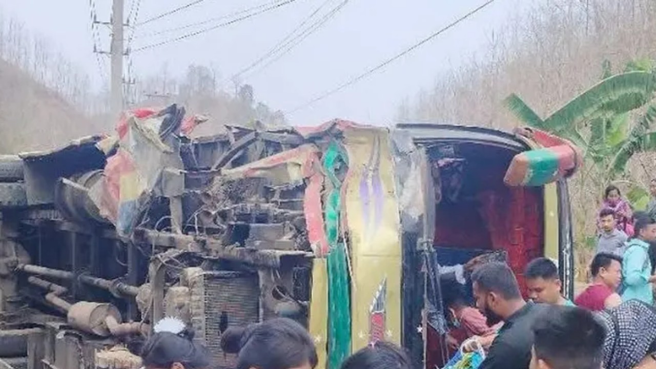 পাহাড়ে ধাক্কা লেগে উল্টে গেল বাস, আহত ১৯
