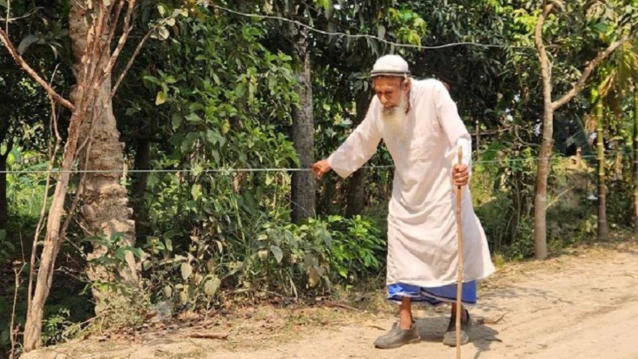 এজন্য সন্তানেরা বাড়ি থেকে মসজিদ পর্যন্ত টেনে দেন দড়ি ও বাঁশ। এরপর দড়ি আর বাঁশের সাহায্যে নিয়মিত মসজিদে যেতেন তিনি।