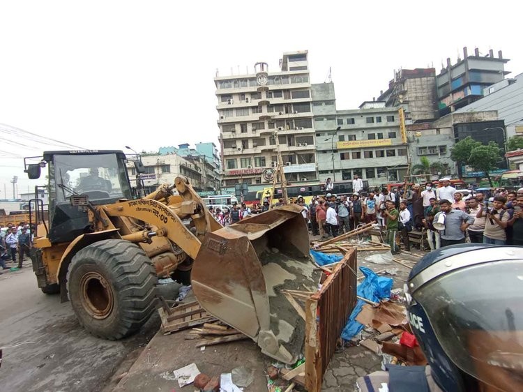 বায়তুল মোকাররম মার্কেটের দক্ষিণ পাশে জিপিও লিংক রোডের দুই পাশের ফুটপাতে উচ্ছেদ অভিযান পরিচালনা করছে ঢাকা দক্ষিণ সিটি কর্পোরেশন (ডিএসসিসি)। অভিযানে গড়ে ওঠা অবৈধ অস্থায়ী দোকানগুলো গুঁড়িয়ে দেওয়া হচ্ছে ভ্রাম্যমাণ আদালতের মাধ্যমে।