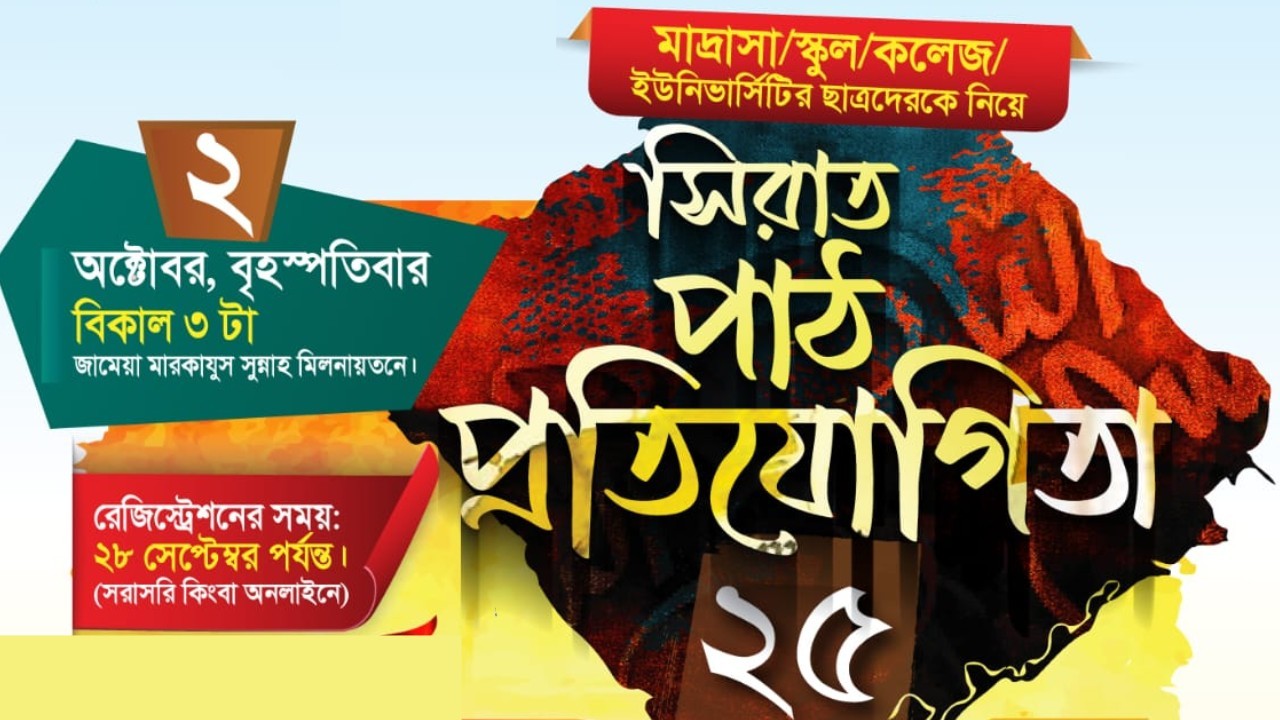 পবিত্র রবিউল আউয়াল মাস উপলক্ষে “সিরাত পাঠ প্রতিযোগিতা–২০২৫” আয়োজন করছে জামেয়া মারকাযুস সুন্নাহ মাদরাসা।