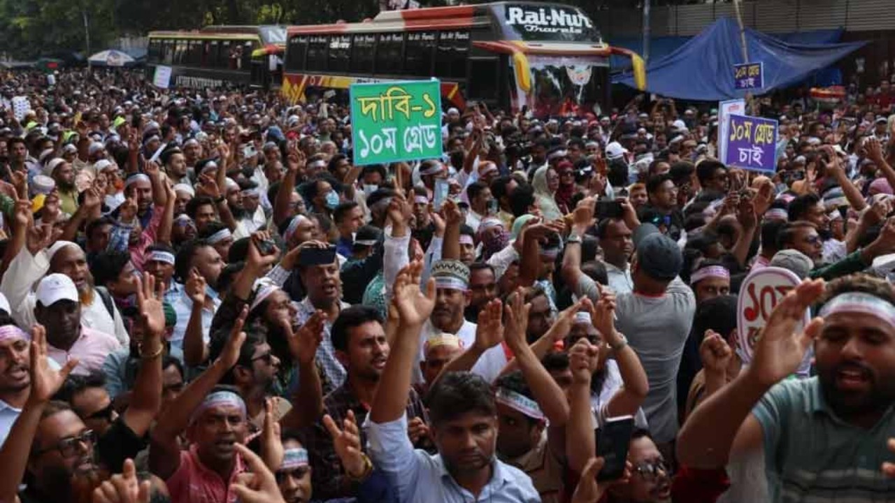 ১১তম গ্রেডের আশ্বাসে চলমান আন্দোলন প্রত্যাহারের ঘোষণা দিয়েছেন সরকারি প্রাথমিক বিদ্যালয়ের সহকারী শিক্ষকরা। সোমবার (১০ নভেম্বর) শিক্ষকদের প্রাথমিক শিক্ষক দাবি বাস্তবায়ন পরিষদ ও প্রাথমিক সহকারী শিক্ষক সংগঠন ঐক্য পরিষদের নেতৃবৃন্দের সঙ্গে অর্থ বিভাগ, অর্থ মন্ত্রণালয় এবং প্রাথমিক ও গণশিক্ষা মন্ত্রণালয়ের বৈঠকে এ সিদ্ধান্ত নেওয়া হয়।