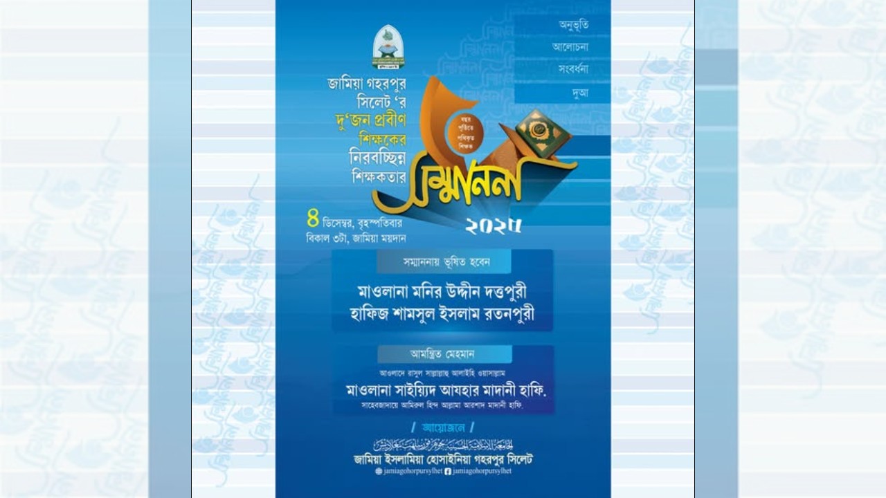 সিলেটের ঐতিহ্যবাহী জামিয়া ইসলামিয়া হোসাইনিয়া গহরপুরের দুজন প্রবীণ শিক্ষকের নিরবচ্ছিন্ন শিক্ষকতায় পঞ্চাশ বছর পূর্তিতে ‘পথিকৃৎ শিক্ষক সম্মাননা-২০২৫’ আয়োজন করা হয়েছে।