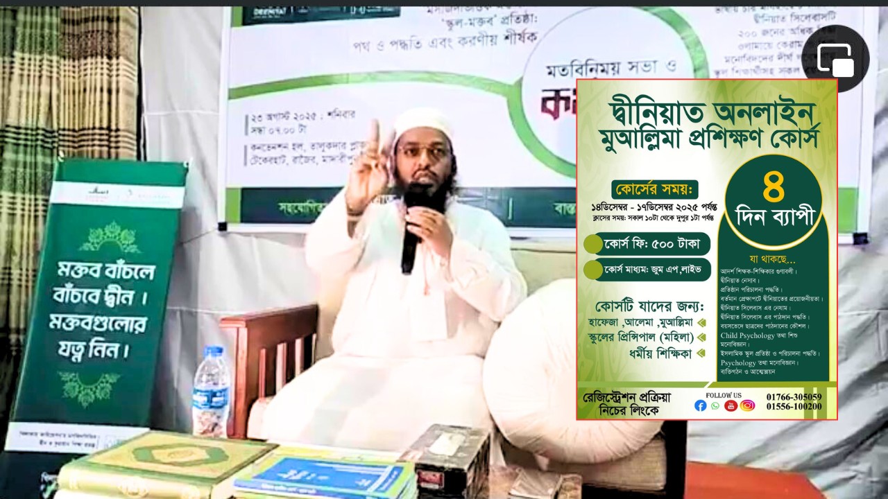 বহু প্রতীক্ষার পর শুরু হতে যাচ্ছে ‘দ্বীনিয়াত কেন্দ্রীয় মুআল্লিম প্রশিক্ষণ কোর্স’ এবং পাশাপাশি মাস্তুরাতদের জন্য আয়োজন করা হয়েছে ‘দ্বীনিয়াত অনলাইন মুআল্লিমা প্রশিক্ষণ কোর্স’।