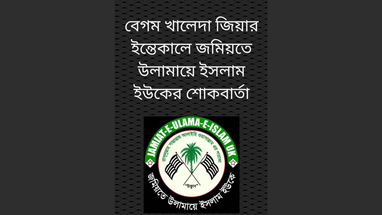 বাংলাদেশের সাবেক প্রধানমন্ত্রী, বিএনপি চেয়ারপারসন ও দেশনেত্রী বেগম খালেদা জিয়ার ইন্তেকালে জমিয়তে উলামায়ে ইসলাম ইউকে গভীর শোক, দুঃখ ও সমবেদনা প্রকাশ করছে।
