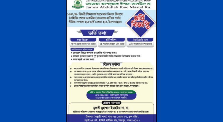 সমাজ-সভ্যতার বহুমুখী সংকট, আদর্শিক দ্বন্দ্ব ও নৈতিক অবক্ষয়ের এই যুগে সমকালীন চ্যালেঞ্জ মোকাবিলায় যুগসচেতন, প্রাজ্ঞ, নিষ্ঠাবান দাঈ ও গবেষক আলেম তৈরি সময়ের অপরিহার্য দাবি।
