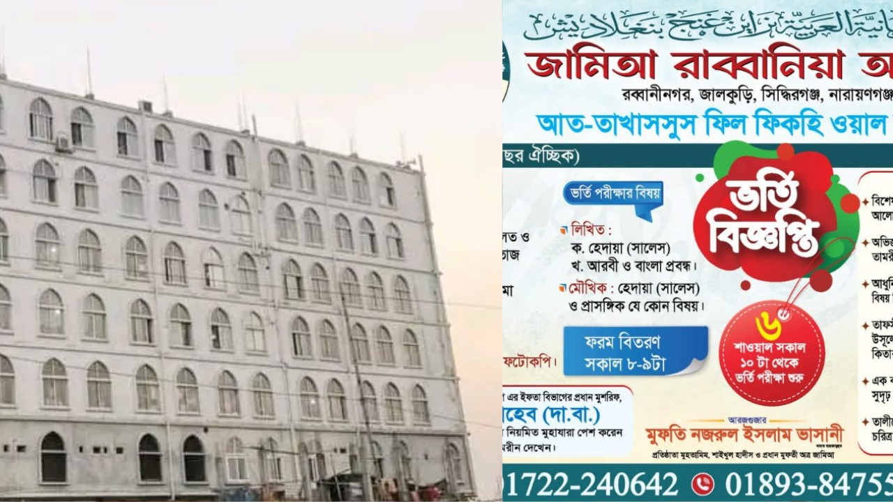 বেফাকে শীর্ষ মেধাস্থান অর্জনকারী শিক্ষাপ্রতিষ্ঠান জামিআ রাব্বানিয়ার ভর্তির তারিখ ঘোষণা করা হয়েছে। আগামী ৬ শাওয়াল ১৪৪৭ হিজরি মোতাবেক ২৬ মার্চ ২০২৬ ঈসায়ি বৃহস্পতিবার নতুন শিক্ষাবর্ষে ভর্তি নেওয়া হবে। কোটা খালি থাকলে ৭ শাওয়াল, ২৭ মার্চ শুক্রবারও ভর্তি চলবে।