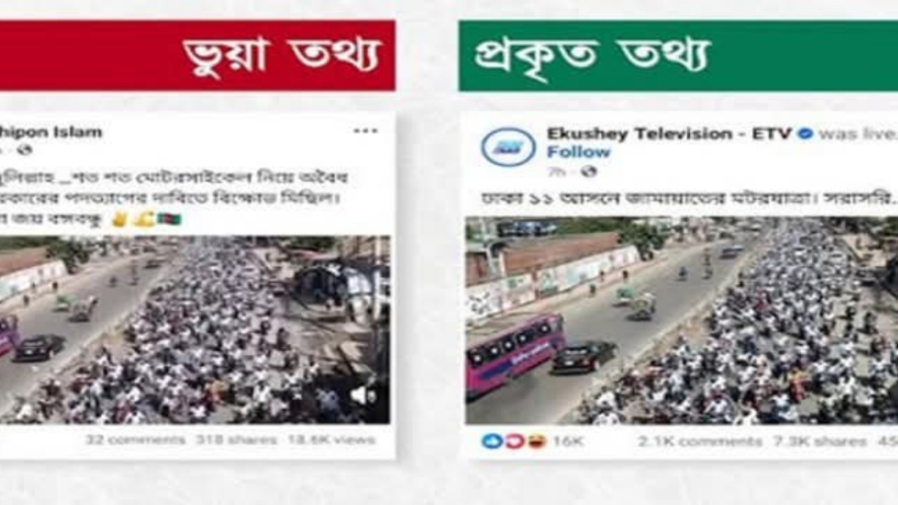 আওয়ামী লীগের বিক্ষোভ মিছিল দাবি করে জামায়াতে ইসলামীর কর্মসূচির ভিডিও ছড়িয়ে বিভ্রান্তির অপচেষ্টা শনাক্ত করেছে রিউমার স্ক্যানার।