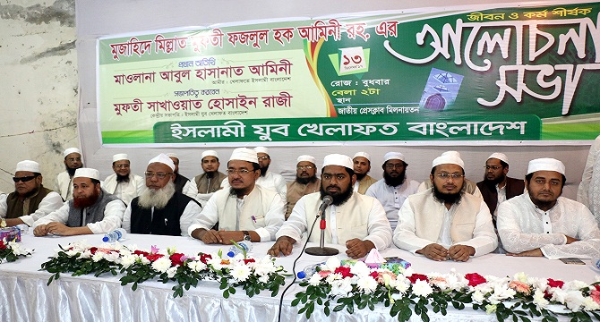 আজ বুধবার দুপুর ২ টায় জাতীয় প্রেসক্লাব মিলনায়তনে ইসলামী যুব খেলাফত বাংলাদেশের উদ্যোগে আল্লামা মুফতী ফজলুল হক আমিনী রহ. এর ‘জীবন ও কর্ম’ শীর্ষক আলোচনা সভায় প্রধান অতিথির বক্তব্যে তিনি এসব কথা বলেন।