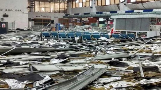 এ ঝড়ে বিমানবন্দরে প্রবেশের রাস্তায় হোর্ডিং-সহ বেশকিছু কাঠামো ভেঙে পড়ে। যাত্রী ছাউনির গেটের সামনে গাছ পড়ে রাস্তা আটকে যায়। পরে সেগুলো সয়ংক্রিয় লাডারের সাহায্যে সরিয়ে ফেলা হয়।