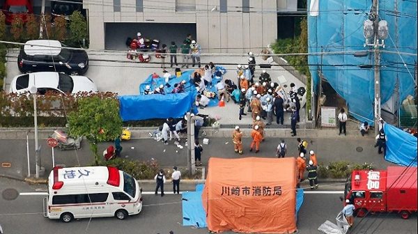 মঙ্গলবার সকালে এ ঘটনা ঘটেছে টোকিওর দক্ষিণে কাওয়াসাকি শহরে। পুলিশের কথায়, এখনও পর্যন্ত দুইজনের মৃতদেহ উদ্ধার হয়েছে। মৃতের সংখ্যা আরও বাড়ার আশঙ্কা রযেছে। গুরুতর জখম ১৭ জন। আততায়ীকে গ্রেফতার করেছে পুলিশ।