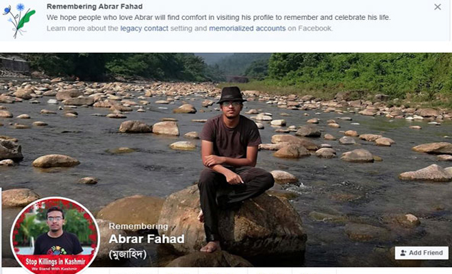 অন্যদের মতো আবরারের ফেসবুক আইডিকেও তাই করা হলো। তার শুভানুধ্যায়ীদের প্রতি ফেসবুকের বার্তা– ‘আমরা আশা করি, যারা অবরারকে ভালোবাসেন তারা আবরারের স্মৃতি ও জীবন স্মরণে এ আইডি পরিদর্শনে স্বাচ্ছন্দ্য বোধ করবেন।’