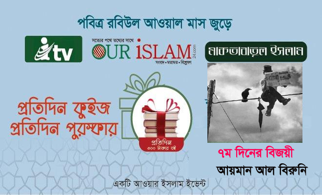 আওয়ার ইসলাম: উত্তর আমেরিকার জনপ্রিয় ইসলামিক টেলিভিশন Itvusa ও আওয়ার ইসলাম টোয়েন্টিফোর ডটকমের যৌথ উদ্যোগে আয়োজিত সিরাতুন্নবী সা. কুইজের আজকের (প্রশ্ন-৭) আয়মান আল বিরুনি। বিজয়ীকে পুরস্কার হিসেবে ৩০০ টাকার বই এবং সিরাত প্রতিযোগিতায় বিজয়ের সার্টিফিকেট প্রদান করা হবে।