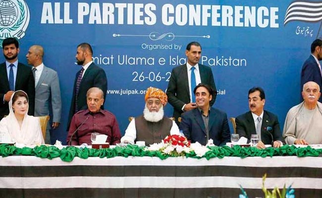 এদিকে সর্বদলীয় বৈঠক নিয়ে ইতিমধ্যে পিপলস পার্টির নেতা বিলাওয়াল ভুট্টো জারদারি ও মুসলিম লীগ সাধারন সম্পাদক আহসান ইকবালের সঙ্গে কথা বলেছেন মজলিসে মুত্তাহাদা আমলের প্রধান মাওলানা ফজলুর রহমান।
