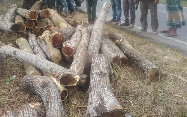 শুক্রবার (৩ জানুয়ারি) ভোরে স্থানীয় ইউপি সদস্য রঘুনাথের নেতৃত্বে একদল পাচারকারী গাছগুলো কেটে নিয়ে যাওয়ার সময় স্থানীয় লোকজন টের পেয়ে বন বিভাগের কর্মকর্তাদের খবর দেয়।