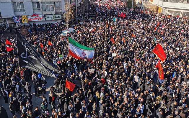 ইরানের রাজধানী তেহরানে তার জানাজার নামাজে ছিলো কোটি মানুষের উপস্থিতি।এরপর গতকাল মঙ্গলবার তার নিজ গ্রামে দাফনের কাজ সম্পন্ন হওয়ার কথা ছিলো। কিন্তু অতিরিক্ত মানুষের চাপে সেখানে পদদলিত হয়ে মারা যান অন্তত ৫৬ জন। যার ফলে গতকাল তার দাফন কার্য সম্পন্ন হয়নি। প্রতিশোধের হামলার পর আজ বুধবার তার দাফন কাজ সম্পন্ন হয়েছে।