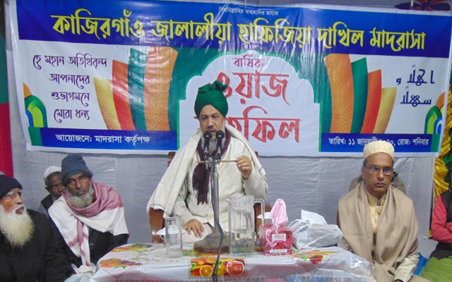 ১১ জানুয়ারি রাতে সিলেট সদর উপজেলার মোগলগাঁও ইউনিয়নের কাজিরগাঁও হাজী মরতুজা আলীর প্রতিষ্ঠিত জালালীয়া হাফিজিয়া দাখিল মাদরাসার বার্ষিক ওয়াজ মাহফিলে প্রধান অতিথির বয়ান পেশ কালে উপরোক্ত কথা গুলো বলেন।
