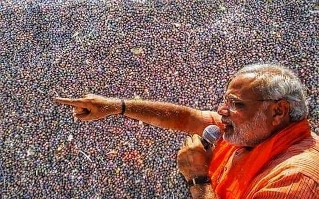 সেখানে দেখা যাচ্ছে আকাশ সমান উঁচু একটি মঞ্চে দাড়িয়ে নরেন্দ্র মোদি মাইকে বক্তৃতা দিচ্ছেন। অনেকটা নীচে কোটি কোটি সর্ষের দানা। দানাগুলির মাঝে থাকা সরিষা গাছের কাঠিগুলো ছবি থেকে মুছতে হয়ত ভুলে গিয়েছে আইটি সেল। খবর দৈনিক আজকালের।